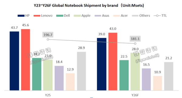 El mercado global de laptops atraviesa un momento complicado, y las cifras lo confirman: según la firma de inteligencia de mercado Sigmaintell, los envíos mundiales de notebooks en 2026 cerrarán en 181,1 millones de unidades, lo que equivale a una caída interanual del 8%. La culpa, en gran medida, recae sobre el alza en los precios globales de la DRAM y la destrucción de demanda que eso arrastra. En medio de ese panorama, Apple emerge como la excepción más llamativa.