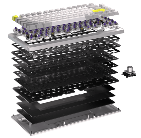 Presentamos el CORSAIR MAKR 75, una experiencia de teclado DIY de primer nivel con montaje de tipo gasket, estructura de aluminio, espuma amortiguadora de sonido en 8 capas y sondeo hiper-rápido de 8.000 Hz. El MAKR 75 es un lienzo espectacular para montar y perfeccionar el teclado ideal con interruptores intercambiables, teclas, mandos giratorios, placas de interruptores, módulos adicionales y mucho más.