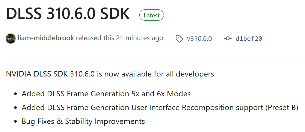 El SDK de DLSS 4.5 ya está disponible para desarrolladores. NVIDIA lo publicó oficialmente junto con soporte para Dynamic Multi Frame Generation y el modo 6X, las dos incorporaciones más importantes que llegaron con DLSS 4.5 a principios de año.