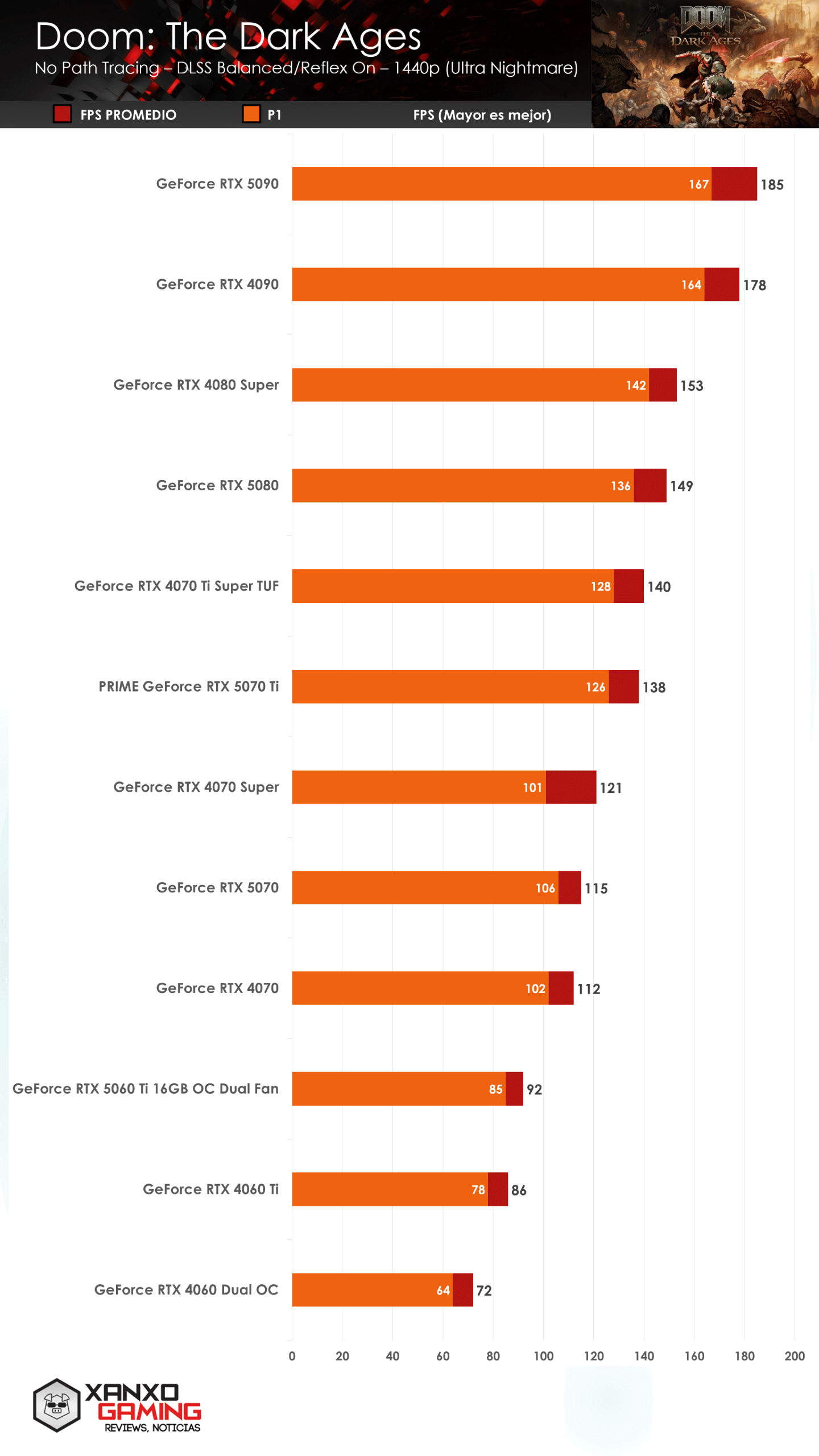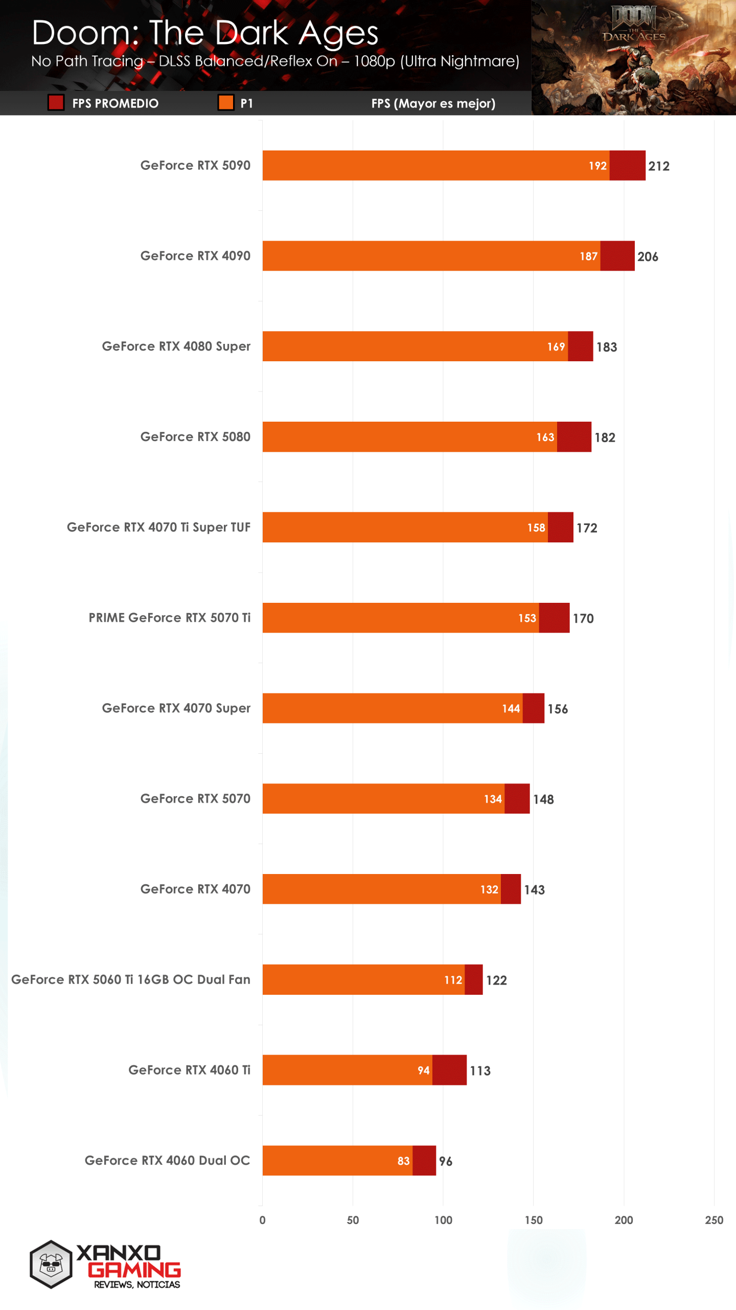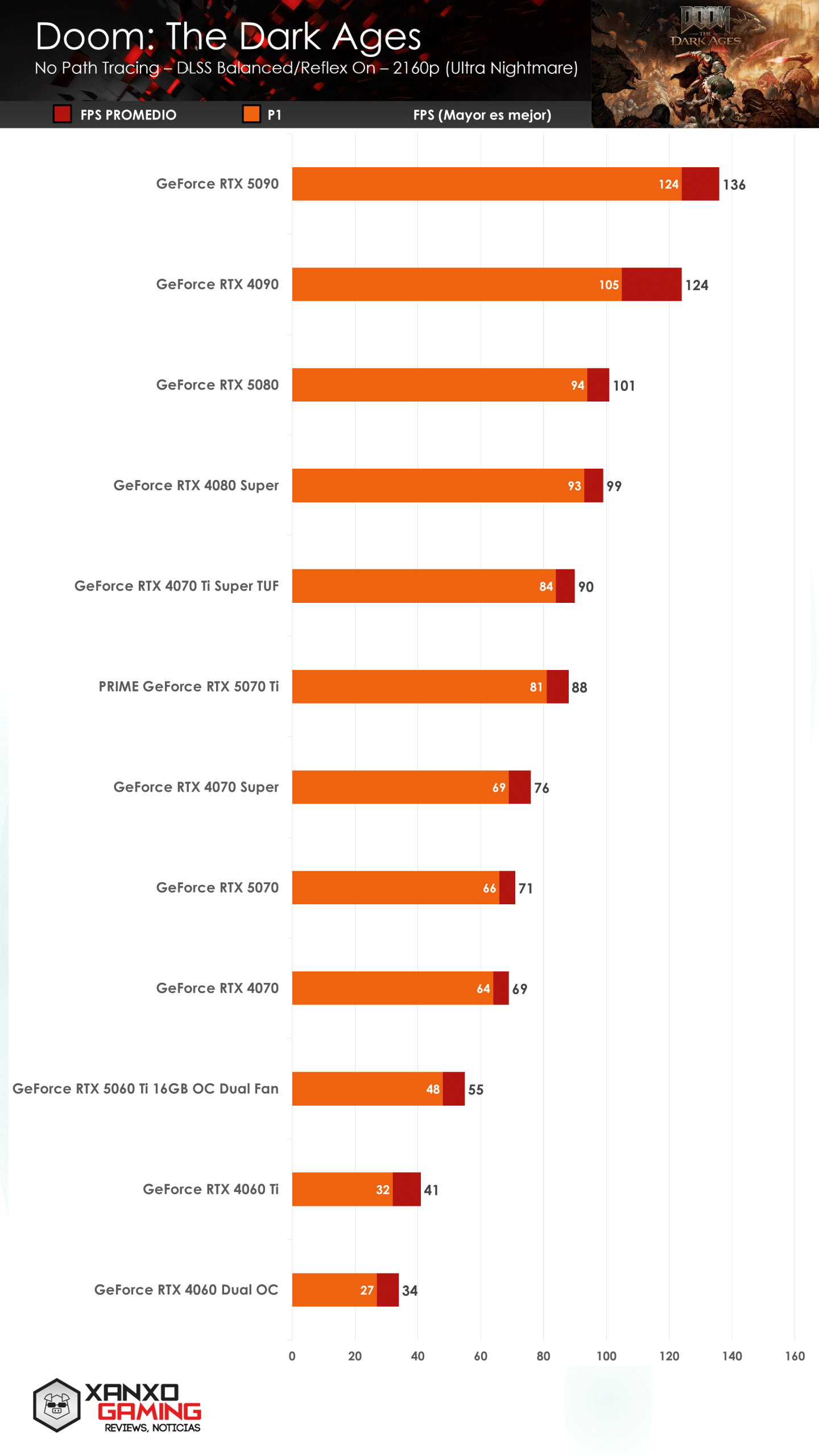 Análisis técnico y benchmarks – Doom: The Dark Ages (RTX 50 y RTX 40)
