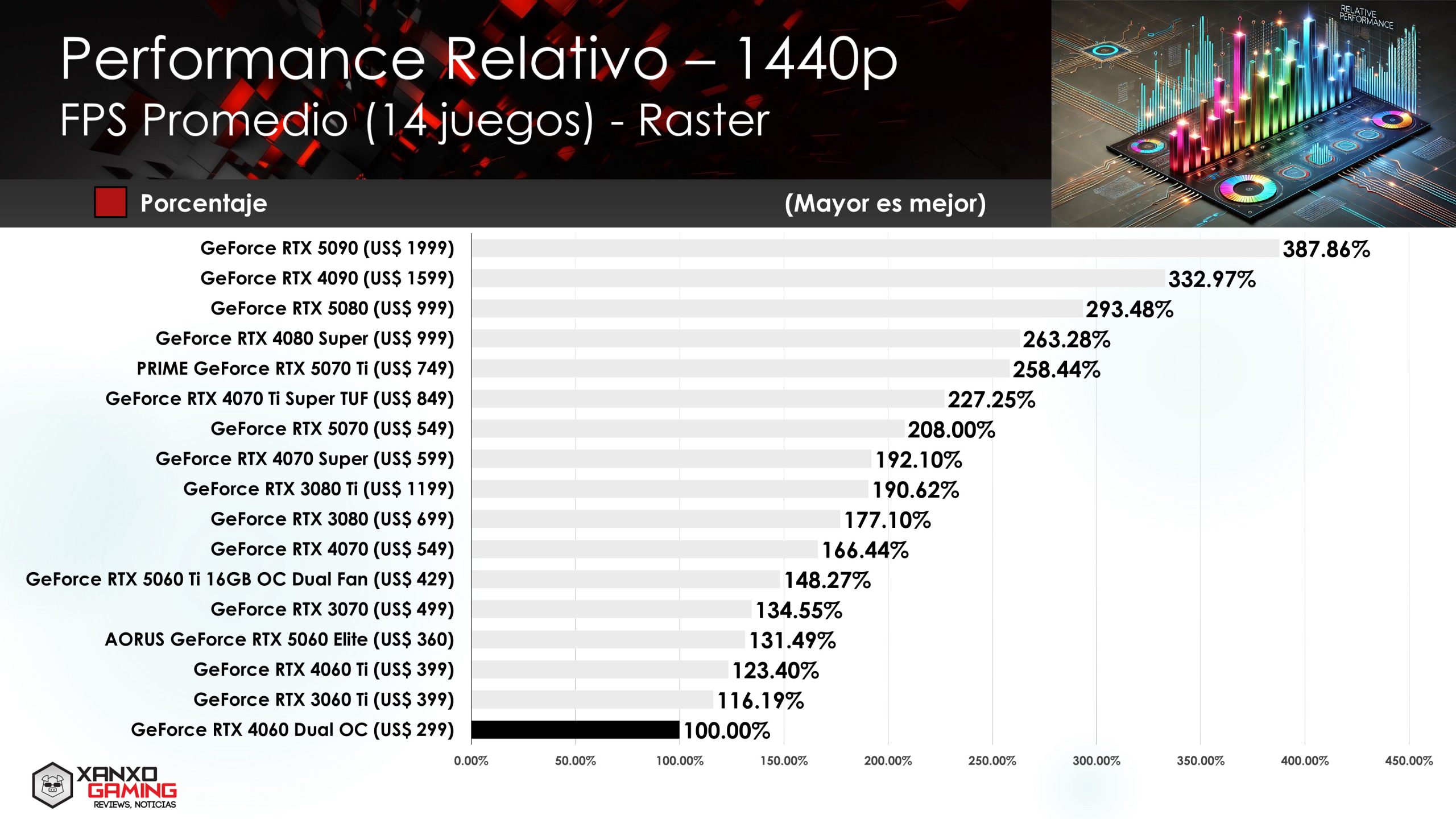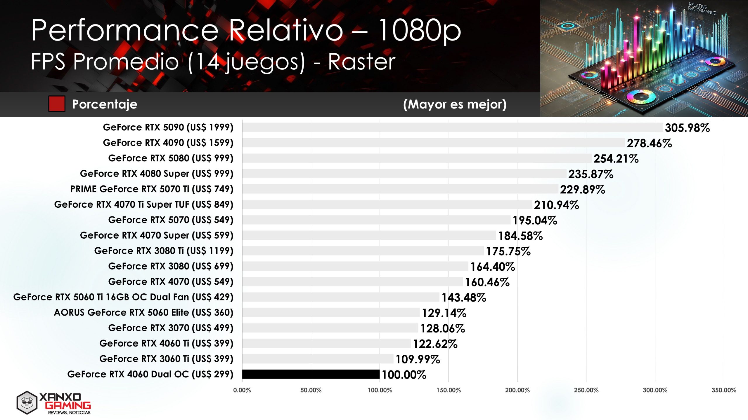 - Me disculpo por no incluir resultados de la GeForce RTX 3060. Aunque poseo la tarjeta, la falta de un sample oficial de la RTX 5060 para el embargo hizo que priorizara otras labores personales y no rebenchmarkeara la RTX 3060 en todos los escenarios.